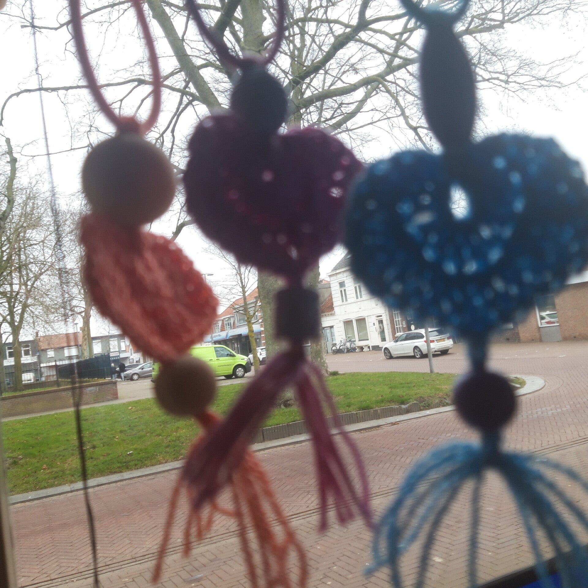 Een gehaakt hart voor aan de binnen spiegel in de auto, of over de hals van een fles wijn.